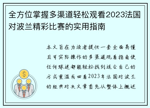 全方位掌握多渠道轻松观看2023法国对波兰精彩比赛的实用指南